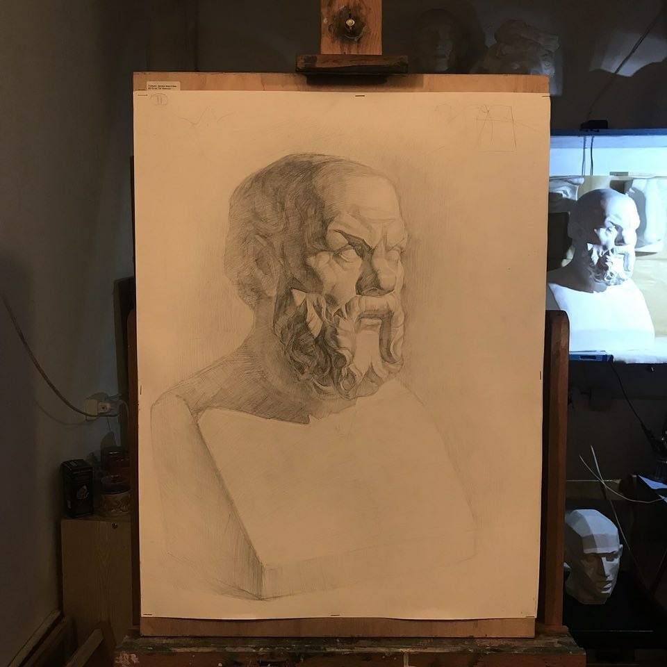Вы изучите конструктивные особенности человеческого черепа, костной основы головы, познакомитесь с построением и отображением мышц шеи, научитесь правильно организовывать компоновку листа; научитесь рисунку античной головы в различных ракурсах;